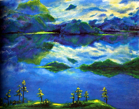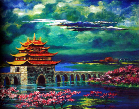 小河淌水大山情(云南风景油画)
