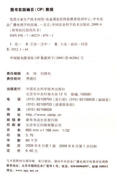 出版社 中国农业科学技术出版社