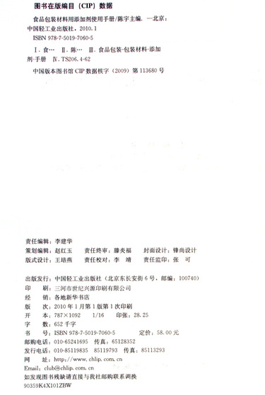 食品包装材料用添加剂使用手册