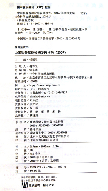 中国科普基础设施发展报告(2010版2009)/科普蓝皮书