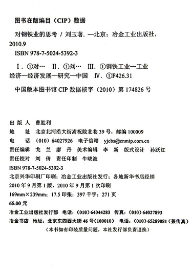 | 出版社 | 冶金工业出版社 |