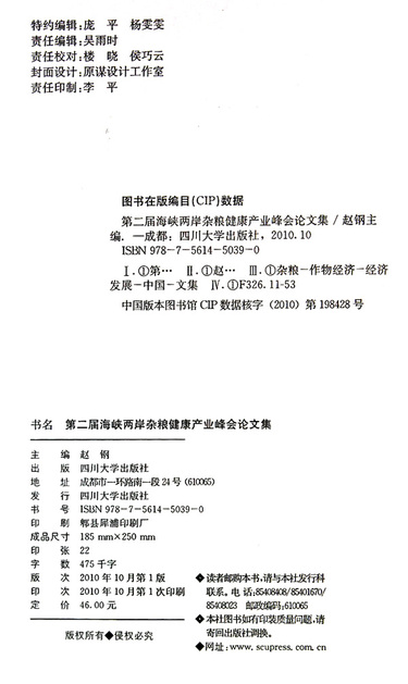 第二届海峡两岸杂粮健康产业峰会论文集