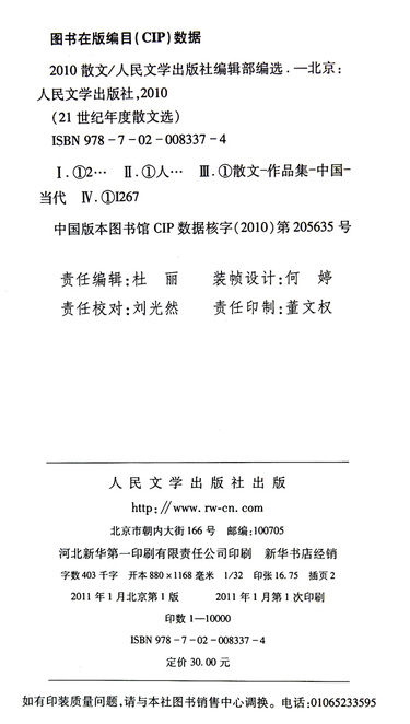 | 印刷时间 | 2011-01-01 |