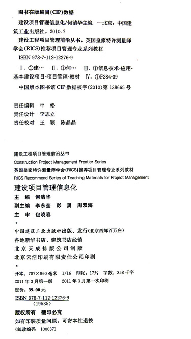 建设项目管理信息化(英国皇家特许测量师学会RICS推荐项目管理专业系列教材)/建设工程项目管理前沿丛书