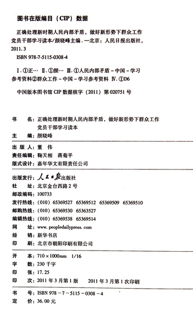 正确处理新时期人民内部矛盾做好新形势下群众工作党员干部学习读本