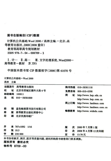 计算机公共基础--Word2000(教育部高职高专规划教材)