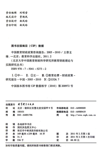 中国教育财政政策咨询报告(2005-2010)/北京大学中国教育财政科学研究所教育财政理论与实践研究丛书