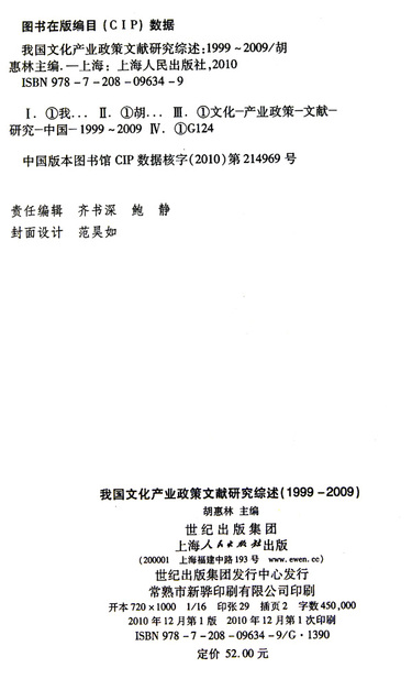 我国文化产业政策文献研究综述(1999-2009)
