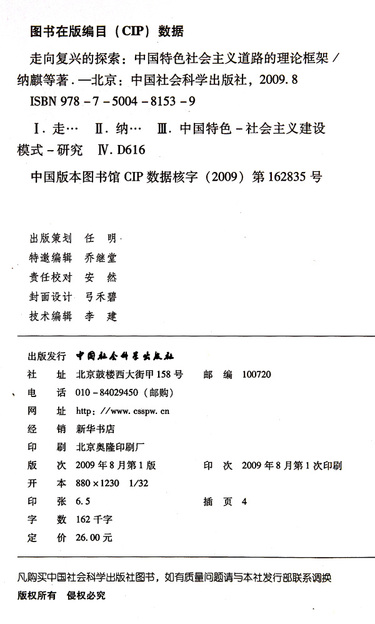 | 出版社 | 中国社会科学出版社 |