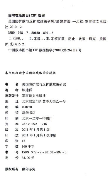 美国防扩散与反扩散政策研究/中国国际战略学会丛书