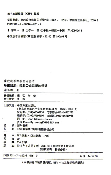 举报制度--架起公众监督的桥梁/腐败犯罪综合防治丛书