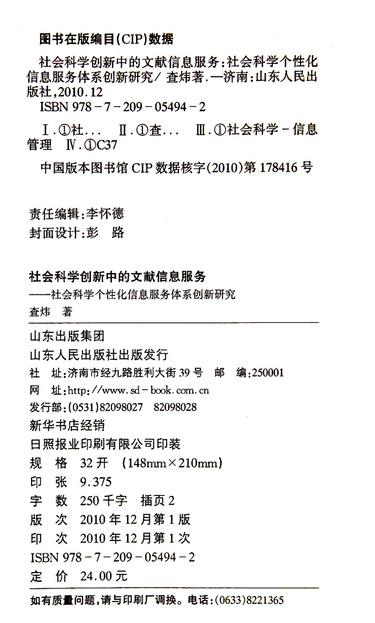 社会科学创新中的文献信息服务--社会科学个性化信息服务体系创新研究