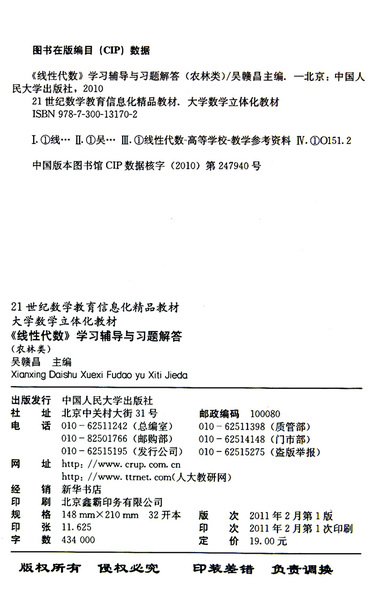 线性代数学习辅导与习题解答(农林类大学数学立体化教材)
