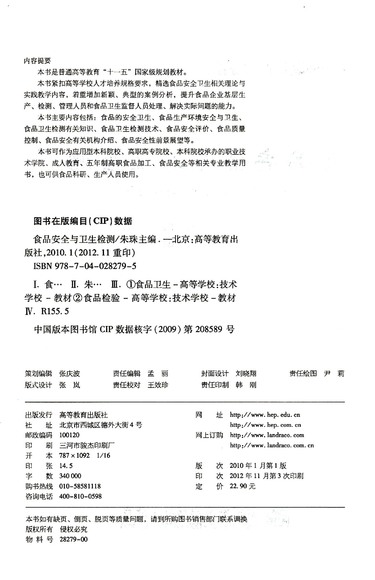 食品安全与卫生检测(普通高等教育十一五国家级规划教材)