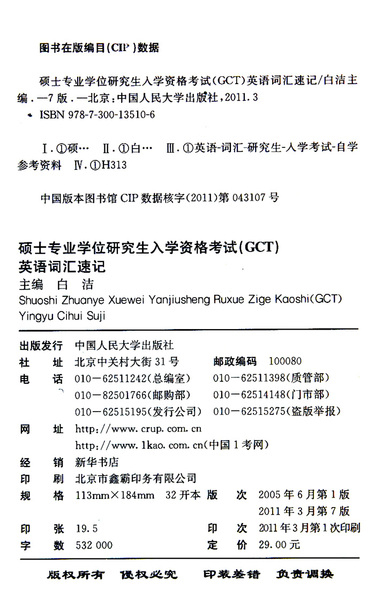 硕士专业学位研究生入学资格考试<GCT>英语词汇速记(2011)