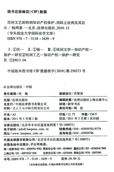 民间文艺的特别知识产权保护(国际立法例及其启示)/华东政法大学国际法学文库