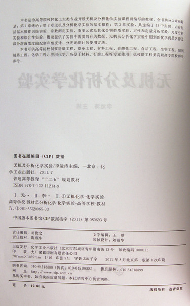 无机及分析化学实验(普通高等教育十二五规划教材)