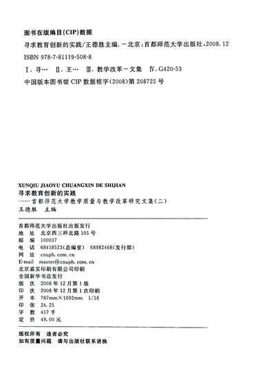 寻求教育创新的实践--首都师范大学教学质量与教学改革研究文集(2)