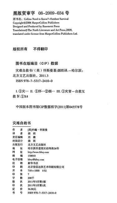 | 著作权合同登记号 | 黑版贸审字08-2009-034号 |