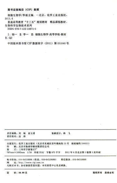细胞生物学(普通高等教育十二五规划教材)/生物科学生物技术系列