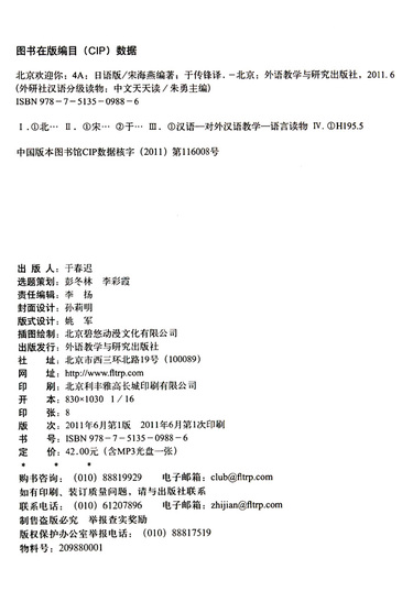 北京欢迎你(附光盘4A外研社汉语分级读物)/中文天天读