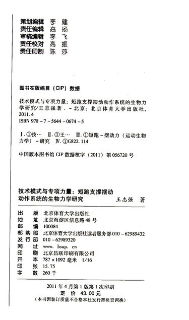技术模式与专项力量--短跑支撑摆动动作系统的生物力学研究/中国体育博士文丛