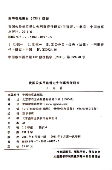 我国公务员监督过失刑事责任研究/刑事法学博士文库
