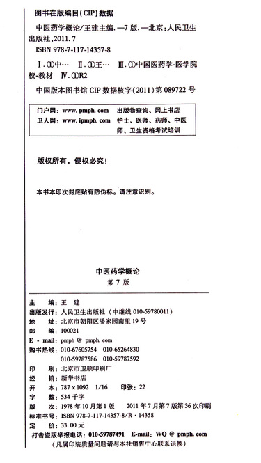 中医药学概论(供药学类专业用第7版全国高等学校药学专业第七轮规划教材)