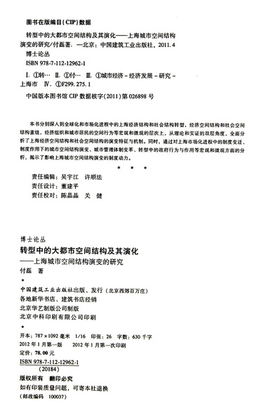 转型中的大都市空间结构及其演化--上海城市空间结构演变的研究/博士论丛