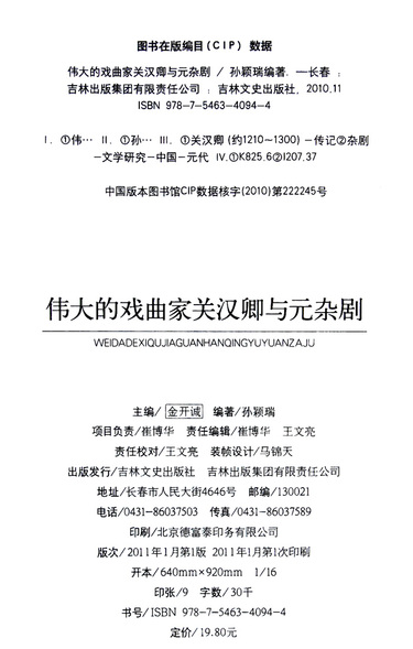 伟大的戏曲家关汉卿与元杂剧/中国古代音乐戏曲