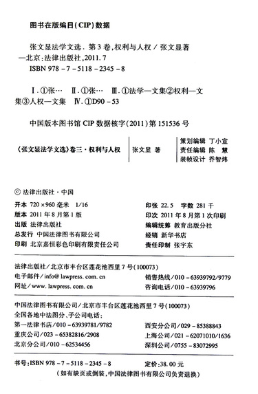 权利与人权/张文显法学文选