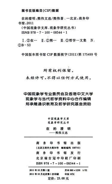 在的澄明--熊伟文选/现象学研究丛书/中国现象学文库
