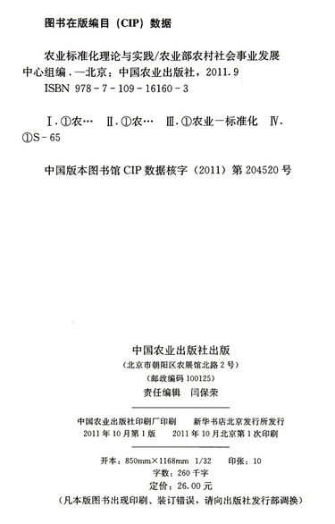 | 出版社 | 中国农业出版社 |