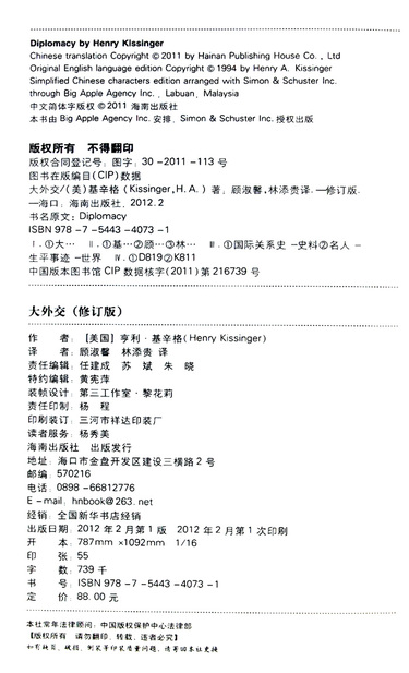 | 作者 | (美)亨利·基辛格 |