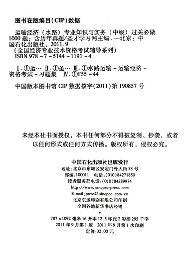 运输经济<水路>专业知识与实务<中级>过关必做1000题(含历年真题)/全国经济专业技术资格考试辅导系列.