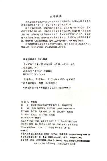 金属矿地下开采(第2版高职高专十二五规划教材)