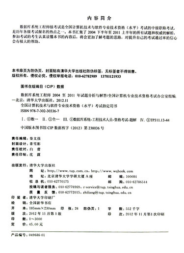 数据库系统工程师2004至2011年试题分析与解答(全国计算机技术与软件专业技术资格水平考试指定用书)
