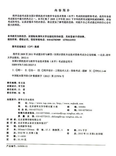 程序员2009至2011年试题分析与解答(全国计算机技术与软件专业技术资格水平考试指定用书)