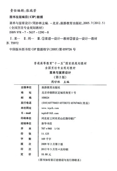 菜单与宴席设计(第2版全国烹饪专业规划教材普通高等教育十一五国家级规划教材)