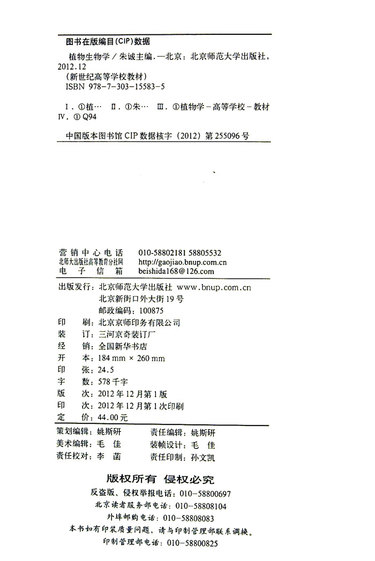 植物生物学(生物学系列教材新世纪高等学校教材)