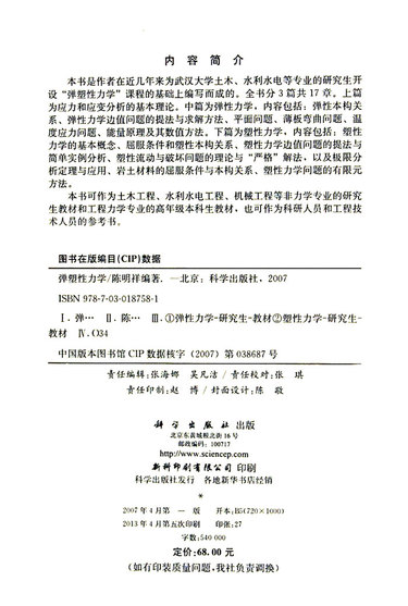 弹塑性力学(科学版研究生精品教材)