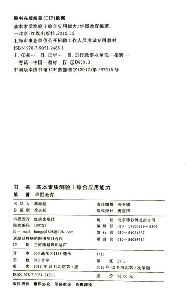 基本素质测验+综合应用能力(最新版上海市事业单位公开招聘工作人员考试专用教材)