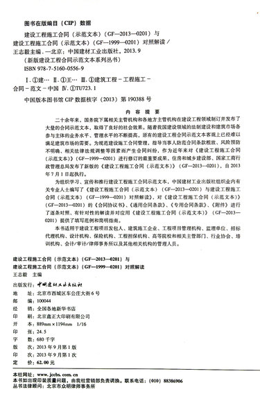 建设工程施工合同<示范文本GF-2013-0201>与建设工程施工合同<示范文本GF-1999-0201>对照解读/新版建设工程合同示范文本系列丛书