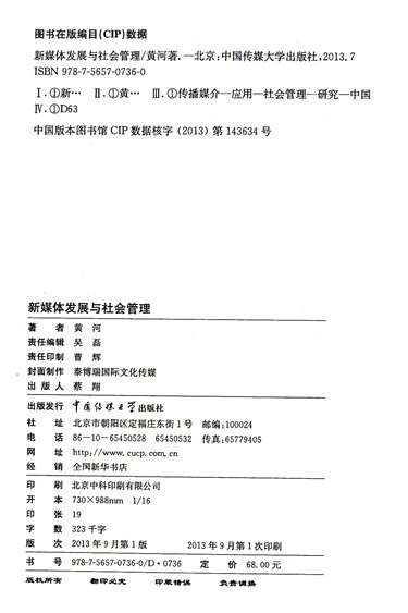 | 出版社 | 中国传媒大学出版社 |