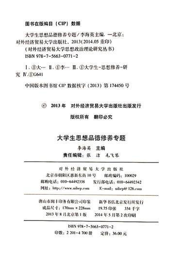 大学生思想品德修养专题/对外经济贸易大学思想政治理论研究丛书