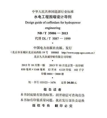 水电工程围堰设计导则(NB\T35006-2013代替DL\T5087-1999)/中华人民共和国能源行业标准