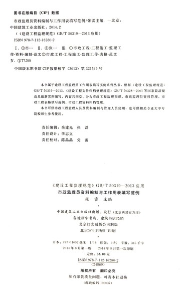 市政监理员资料编制与工作用表填写范例(建设工程监理规范GB\T50319-2013应用)