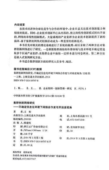 集群创新网络研究(不确定信息化环境下网络合作度与开放度视角)/信息化与经济社会发展研究文库
