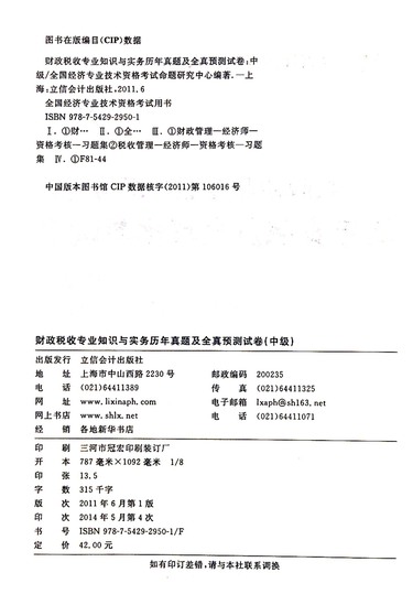 财政税收专业知识与实务历年真题及全真预测试卷(中级)/2014全国经济专业技术资格考试用书