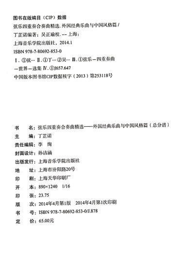 弦乐四重奏合奏曲精选(外国经典乐曲与中国风格篇)